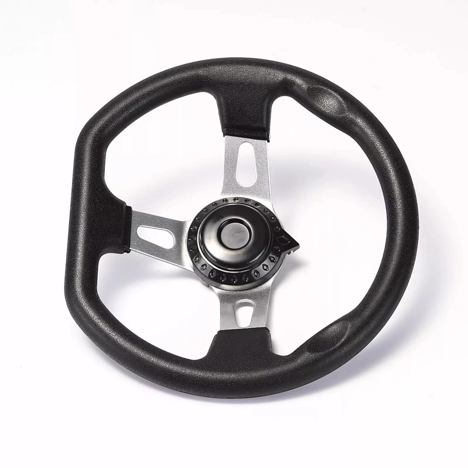 This go-kart steering wheel is made for TDPRO Brand go-karts. This universal go-kart part is also compatible with other brands and models of go-karts from Hammerhead, Roketa, TaoTao, JCL, SUNL, and others. It may be the perfect replacement steering wheel for the old wheel on your go-kart or dune buggy.