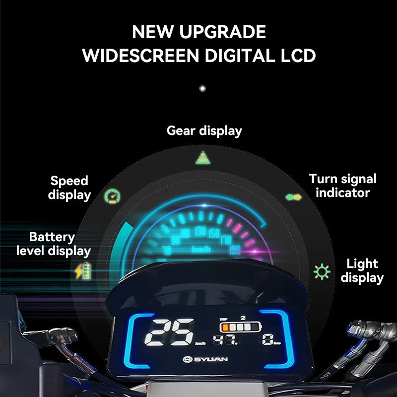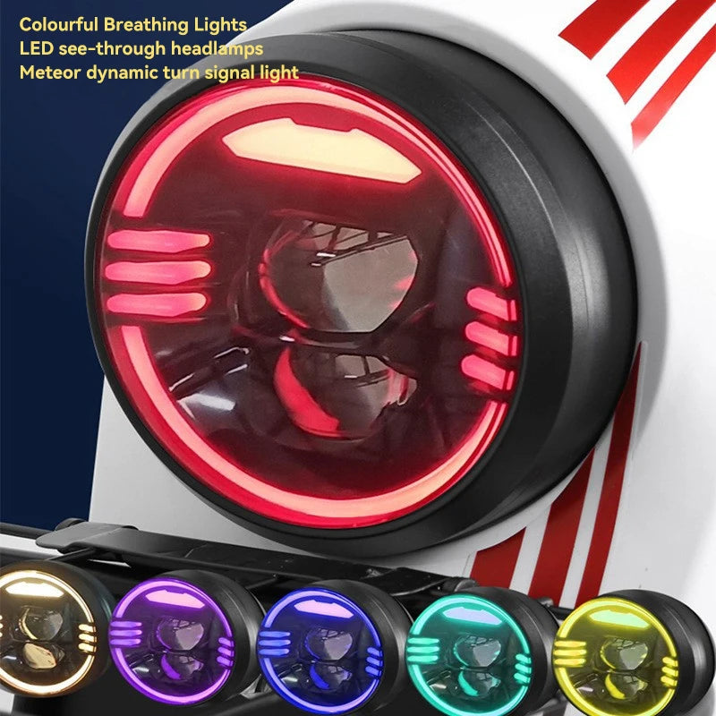 1. Strong power performance: -High power motor: equipped with a 1200 watt motor, such as Kyushu Electric, with abundant power output, it can easily handle normal driving on urban roads, as well as special road conditions such as climbing slopes and crossing overpasses, meeting users' high demand for electric vehicle power. 2. Reliable security configuration: -Linkage braking system: equipped with dual oil pipe linkage braking, when the front brake is pinched, it can simultaneously drive the rear brake. This braking method can quickly brake in emergency situations, effectively shortening the braking distance and greatly improving driving safety. -High quality shock absorption: The design of front and rear hydraulic shock absorption can effectively filter out road bumps, provide a comfortable driving experience during driving, and also help maintain vehicle stability. 3. Fashionable appearance design: -Compact and exquisite car model: The overall car model is relatively compact, with smooth exterior lines, making it easy to shuttle around the city and park, suitable for various narrow streets and parking spaces. -Attention to detail design: Equipped with LED colorful headlights, wind and fire wheel brake pads, and color changing LED clearance lights, it not only increases the vehicle's recognition and aesthetics, but also improves the safety of night driving. 4. Practical Function Configuration: -Multi functional display screen: The equipped LCD screen can clearly display information such as voltage, speed, mileage, lighting, gear, etc., making it convenient for users to understand the vehicle's operating status at any time. -Convenient reversing function: With one click reversing function, it is easier and more effortless to operate in narrow spaces or when adjusting the vehicle position. -Double flash warning function: The vehicle is equipped with dual flash warning lights, which can be turned on to alert other vehicles and pedestrians in case of special situations or temporary parking, enhancing driving safety. -Adequate storage space: Some models are equipped with storage devices such as a trunk, which provides a large storage space for users to easily place daily items such as helmets, raincoats, chargers, etc. 5. High cost-effectiveness: