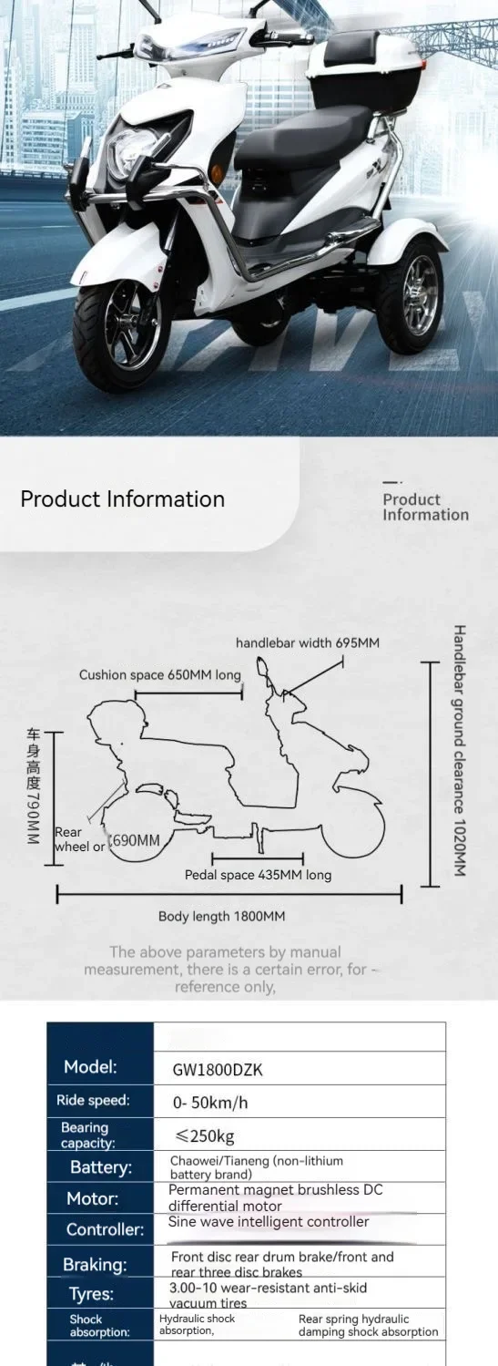 New electric tricycle 72V scooter three-wheeled battery car elderly scooter